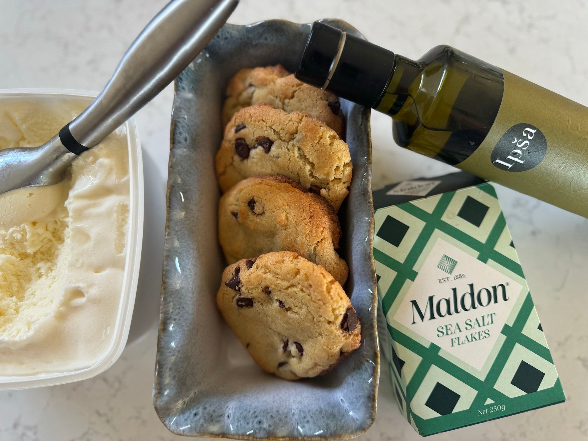 Cookie Vanille-Eis-Sandwich mit Masino Olivenöl